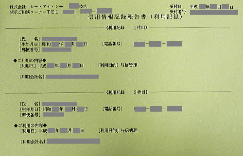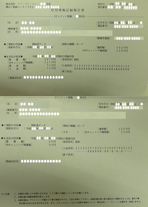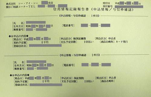 以前(任意整理を考える前)に、情報機関シーアイシーで、私の情報を開示していただいた時のものです。