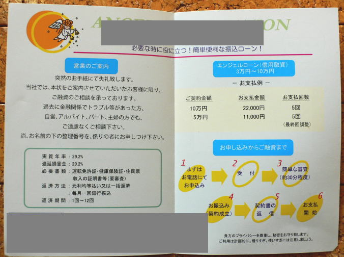 「・・・過去に金融関係でトラブルのあった方、・・・ご相談下さい。」と書かれていました。